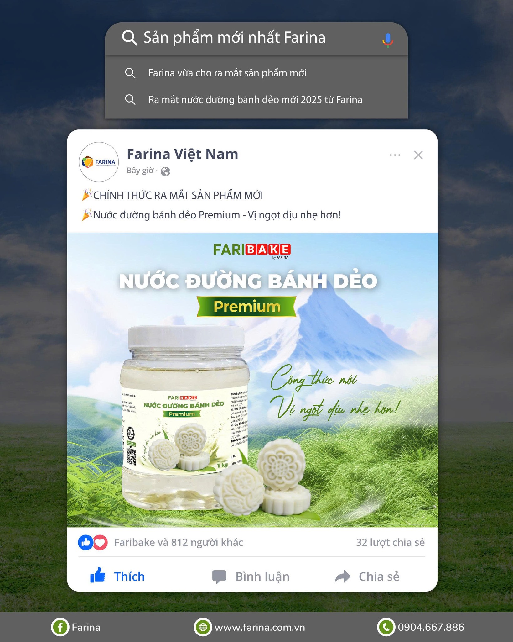 Đúng vào thời điểm mùa vụ Trung thu 2025 đang nóng hơn bao giờ hết, Farina chính thức trình làng sản phẩm mới thuộc nhãn hiệu Faribake: Nước Đường Bánh Dẻo Premium - công thức mới với vị ngọt dịu nhẹ hơn, đáp ứng cao thị hiếu mới của người tiêu dùng hiện đại, đem đến bước tiến khác biệt cho mùa trăng 2025..