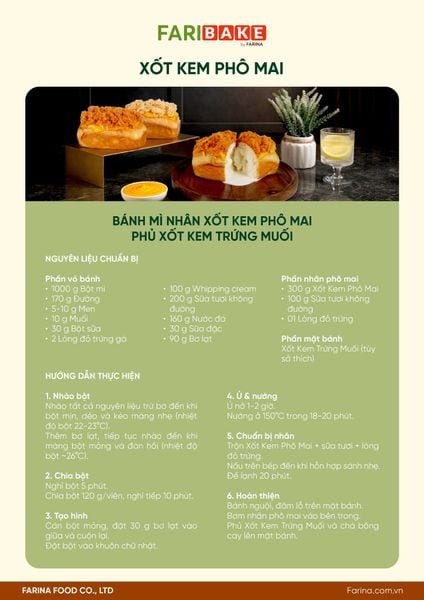 CÔNG THỨC BÁNH MÌ NHÂN XỐT KEM PHÔ MAI PHỦ XỐT KEM TRỨNG MUỐI