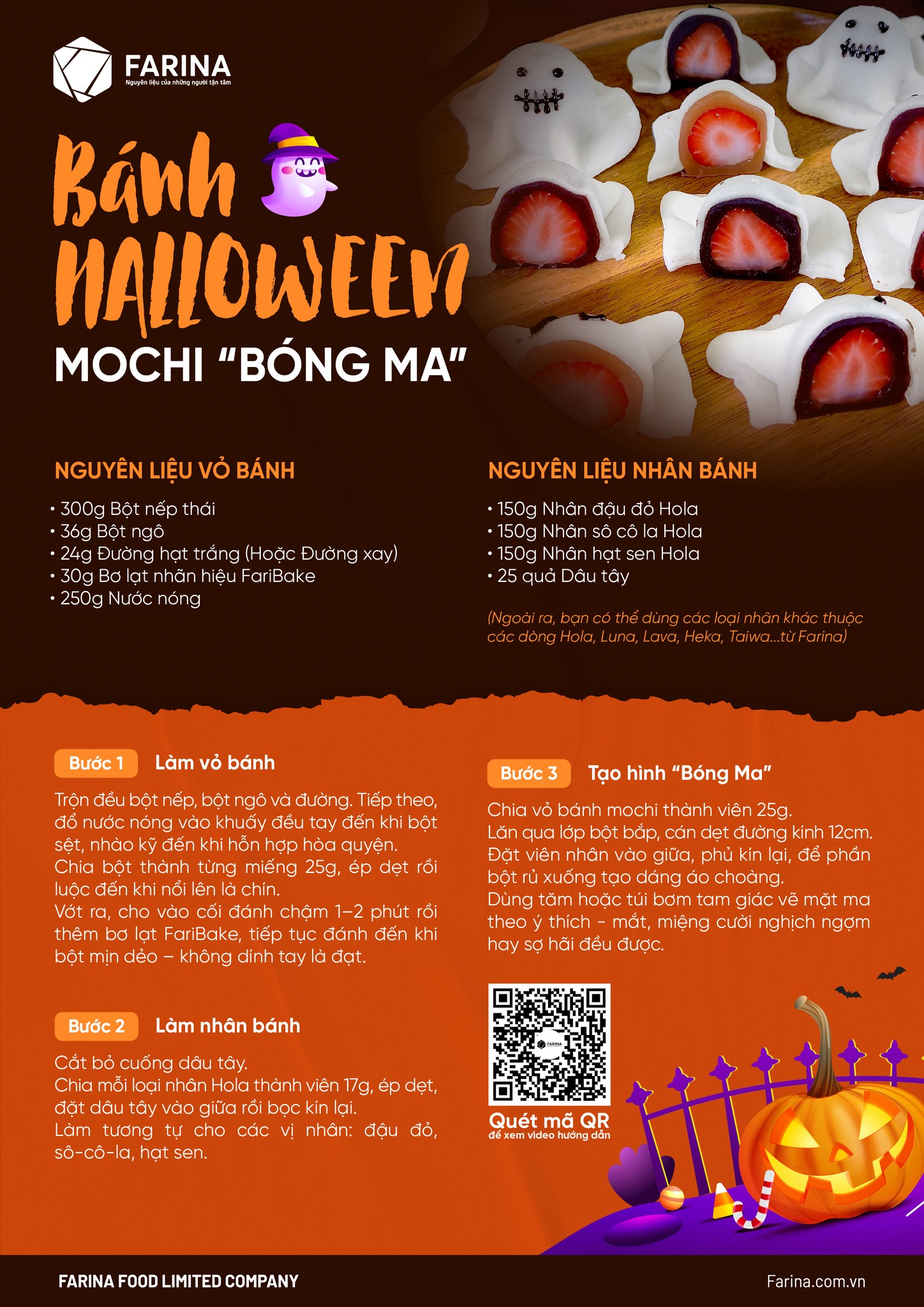 CÔNG THỨC HƯỚNG DẪN LÀM BÁNH HALLOWEEN MOCHI BÓNG MA