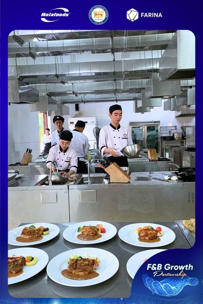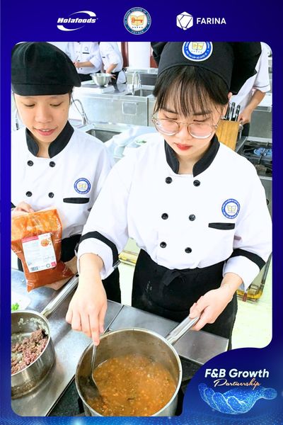 Trong khuôn khổ chương trình hợp tác giữa Holafoods và nhà Trường, những giải pháp nguyên liệu đến từ Holafoods như xốt Pizza & Pasta, dầu hướng dương tinh chế nhãn hiệu FariCook, Bơ lạt nhãn hiệu FariBake, Sữa tươi Holafarm, … đã xuất hiện trong các giờ học sinh động, sát thực tế và giàu tính ứng dụng dành cho các bạn sinh viên.