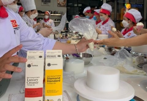Các sản phẩm kem trang trí (topping cream) chính là trợ thủ đắc lực giúp tạo ra những chiếc bánh kem đẹp mắt, nổi bật. Với hương vị thơm ngon khó cưỡng, các sản phẩm topping cream của Farina hiện đang được trung tâm hướng nghiệp Á Âu sử dụng trong quá trình đào tạo học viên gồm Diamond Standard (hộp vàng), Luxury Creamy (hộp đỏ) và La’Creama.